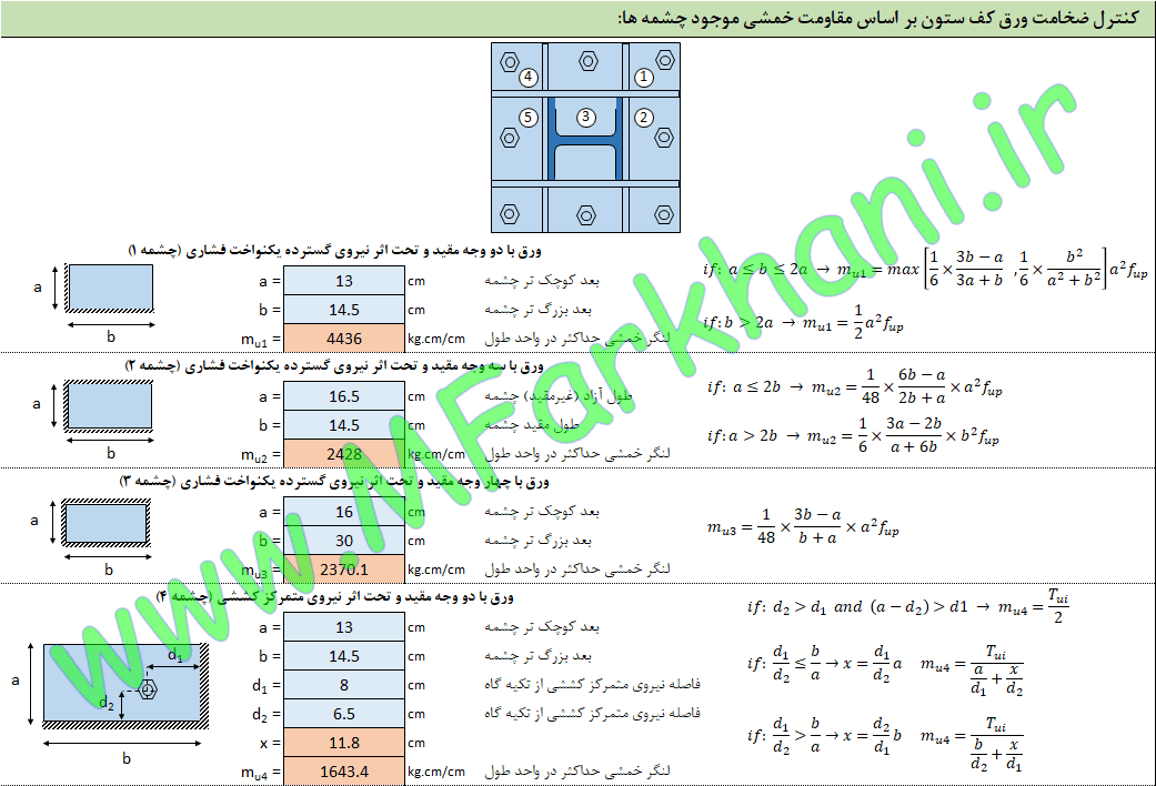 کنترل ضخامت ورق کف ستون بر اساس مقاومت خمشی موجود چشمه ها