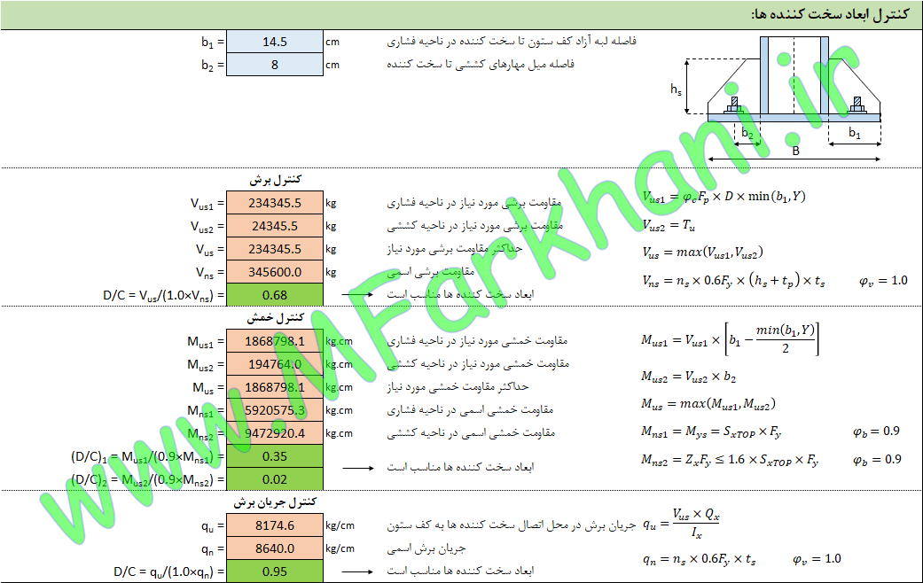 کنترل ابعاد سخت کننده ها از نظر مقاومت برشی، مقاومت خمشی و جریان برش