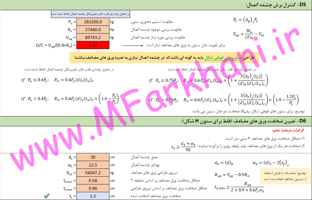 ویژگی های فایل اکسل طراحی اتصال گیردار پیچی با ورق روسری و زیرسری: