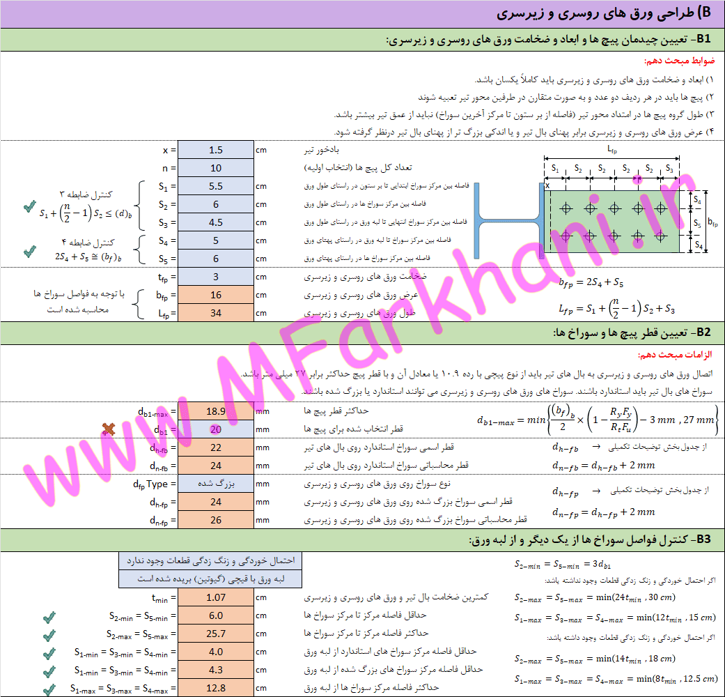 بهترین راه برای طراحی اتصالات پیچی، استفاده از فایل های آماده اکسل است که با دقت زیادی برنامه نویسی شده باشد. با کمک محصول حاضر می توانید اتصال گیردار پیچی با ورق های روسری و زیرسری (که به اتصال BFP معروف است) را در کمترین زمان ممکن و با دقت صددرصدی طراحی نمایید.