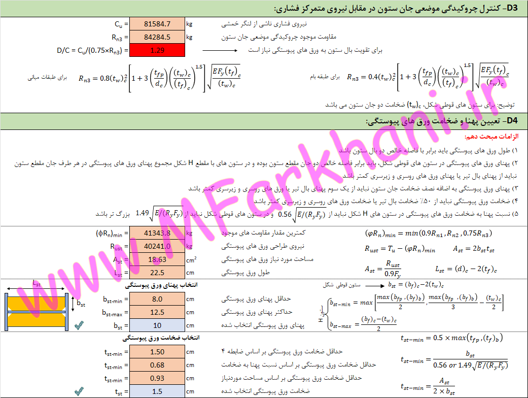 طراحی ورق های پیوستگی و ورق های مضاعف در صورت نیاز