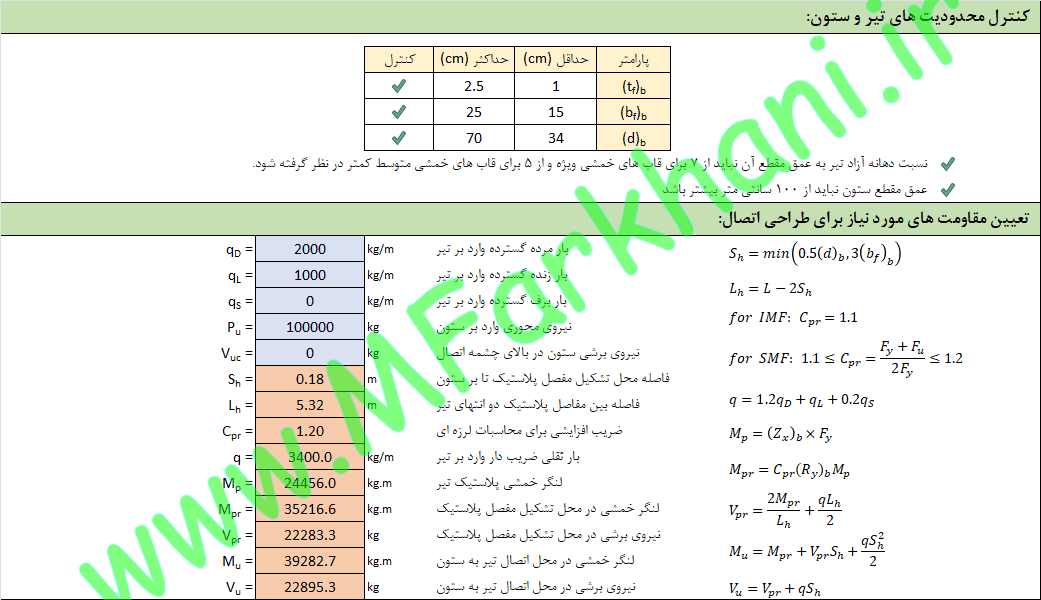 لازم به ذکر است که به منظور اتصال گیردار پیچی تیر به ستون می توان از جزئیات دیگر همچون اتصال BFP و اتصال BSEEP نیز استفاده کرد که فایل اکسل طراحی این اتصالات در سایت موجود است