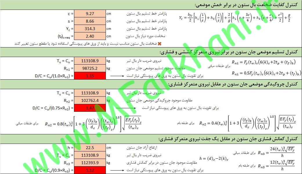 کنترل کفایت ضخامت بال ستون در برابر خمش موضعی