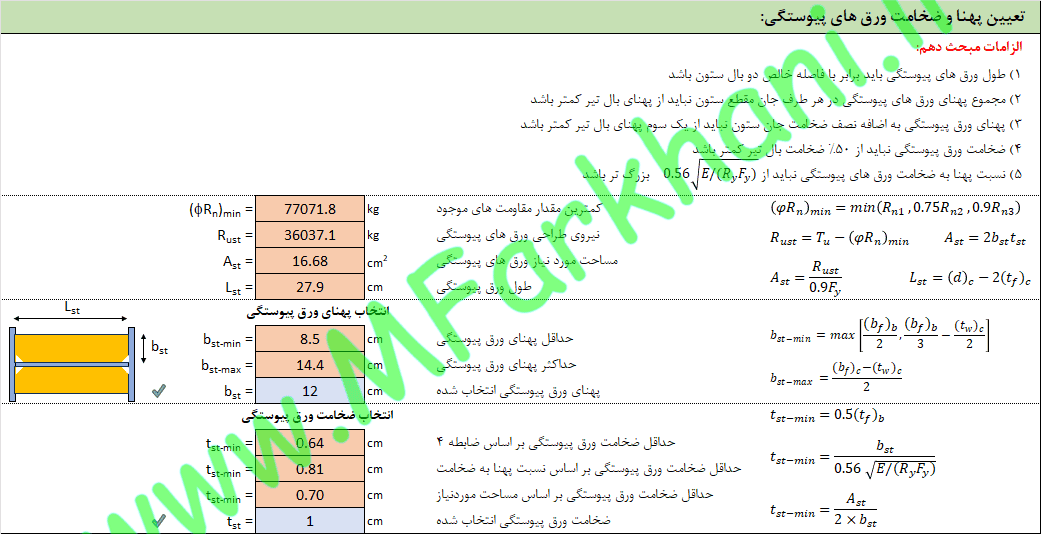 طراحی ورق های پیوستگی و ورق های مضاعف در صورت نیاز