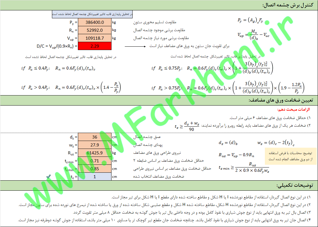 ویژگی های فایل اکسل طراحی اتصال فلنجی یا ورق انتهایی چهار پیچی:
